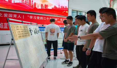 为贯彻学习党的二十大精神,把一心向党、情系祖国的炙热情怀和对党的二十大的精神的深刻感悟凝聚于笔端,2023年6月,beats365在蟠龙校区行知楼二楼西侧大厅和博学楼一楼大厅组织开展了“学习党的二十大精神”书法展览活动。