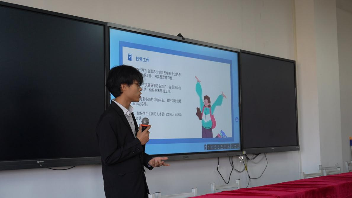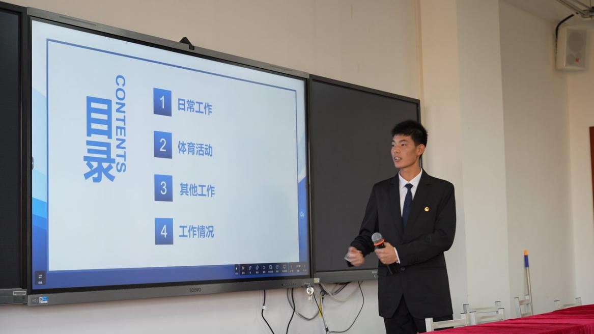 会议第二项,员工会各部门负责人进行工作汇报,他们分别介绍了自己部门的基本情况、本学期工作开展情况等内容,通过交流互动,相互学习提高。