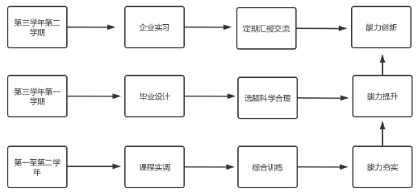 “训”:在专项综合能力课程中采取专项训练教学模式,专项综合能力训练是针对岗位任务具体开展,通过综合实训、跟岗实训、大作业、下企业锻炼、毕业设计等教学环节实施,在训练中加深员工对于岗位技能和学习目标的理解,强化专项技能,同时培养员工的职业素养和爱岗敬业情怀,促进了人才培养质量的提高。