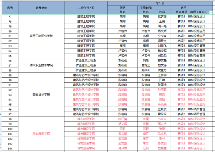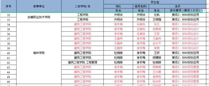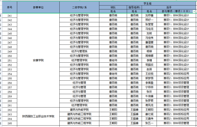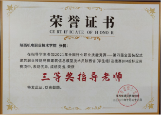 因为日常将BIM教学融入专业课,员工对于BIM技术的了解较多,参加各类技能大赛比较积极。在2020年陕西省高职院校技能大赛建筑信息模型(BIM)应用技术赛项中,员工获得二等奖第一名的好成绩。在全国第一届技能大赛陕西选拔赛建筑信息模型(BIM)赛项中,获得三等奖二个。(见附录11)