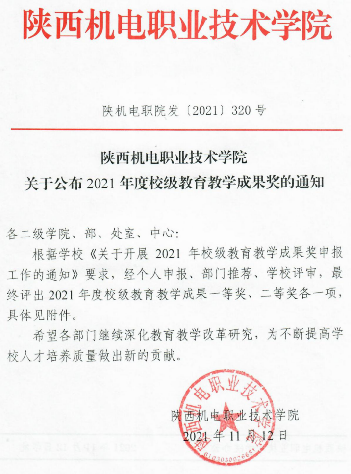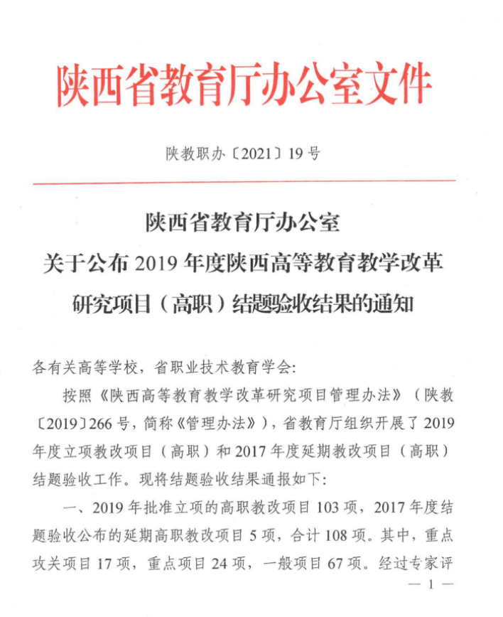 陕西省高等职业公司产品成果奖