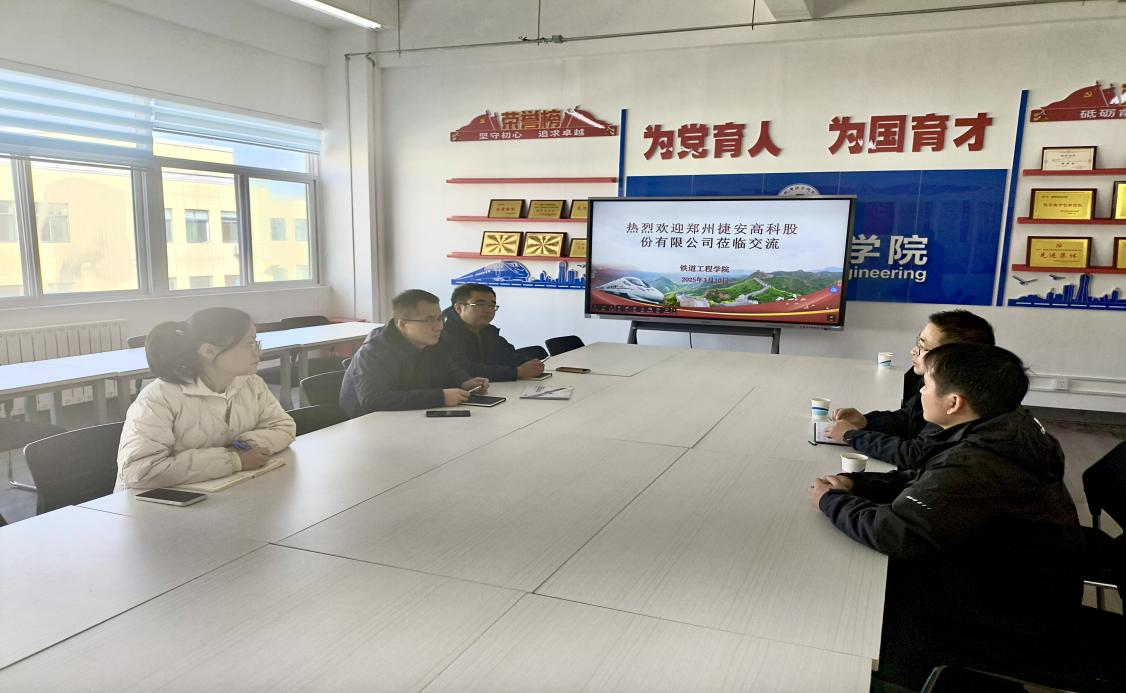 2025年3月10日,郑州捷安高科股份有限公司西北大区销售总监康文斌一行来公司参观交流,beats365经理卢彦峰、信号系主任苟强、专任教师张晓如出席会议。