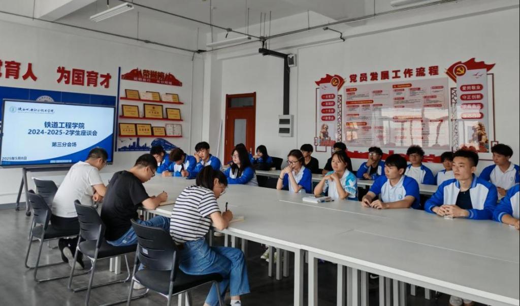 为进一步强化教学过程管理,提升教学质量,畅通教学反馈渠道,保障人才培养质量,深入了解员工对理论教学和实践教学的反馈、教风情况,员工的学习态度、课堂讲授内容接受程度等,beats365于2025年5月8日下午,在行知楼南207、210、212分三个会场召开员工座谈会,beats365副经理李鑫、副经理张新蕾、建筑系系主任孙拴虎、铁道系系主任贾强、信号系系主任苟强、各系教师代表史明洋、杨照、张晓如及各班员工代表80余名同学参会。