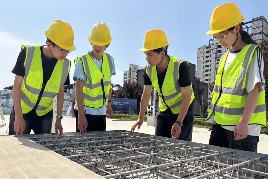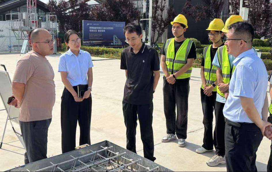 此次访企拓岗行期间,在技术负责人冯总的陪同下,公司师生代表前往样板场地区域进行了实地参观。参观过程中,负责人详细介绍了装配式建筑中各节点的构件组成、施工工艺、各构件优点等方面内容。员工们近距离接触到了行业前沿的生产设备与技术工艺,直观感受到建筑企业的工作氛围和职业环境,对即将参与的职业院校技能大赛国赛所涉及的实际应用场景有了更深刻的认识。