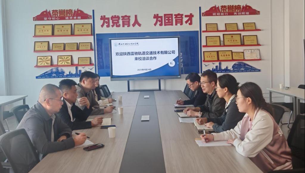 2025年9月24日,陕西雷驰轨道交通技术有限公司董事长邹斌一行来公司洽谈交流,beats365经理卢彦峰、副经理张新蕾、信号系教师赵国庆、柳敏瑞出席会议。