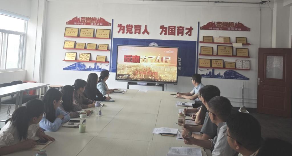 在“以案示警、以案明纪”警示教育环节,支部纪检委员李帅通报了一批违纪违法典型案例,全体党员集中观看中央纪委国家监委警示教育系列片《反腐为了人民》第一季“惩治蝇贪蚁腐”。专题片以基层“微腐败”真实案例,揭露其对群众利益的侵害。满春燕要求党员教师以案为鉴,时刻绷紧纪律之弦,坚决杜绝“四风”问题,自觉维护教师队伍的良好形象。支部全体党员深刻认识到腐败危害无大小,必须时刻保持警醒,筑牢廉洁自律防线,特别是身为教师党员,更要坚守高尚师德,严守纪律红线,在公司产品中以身作则,引导员工树立正确价值观。