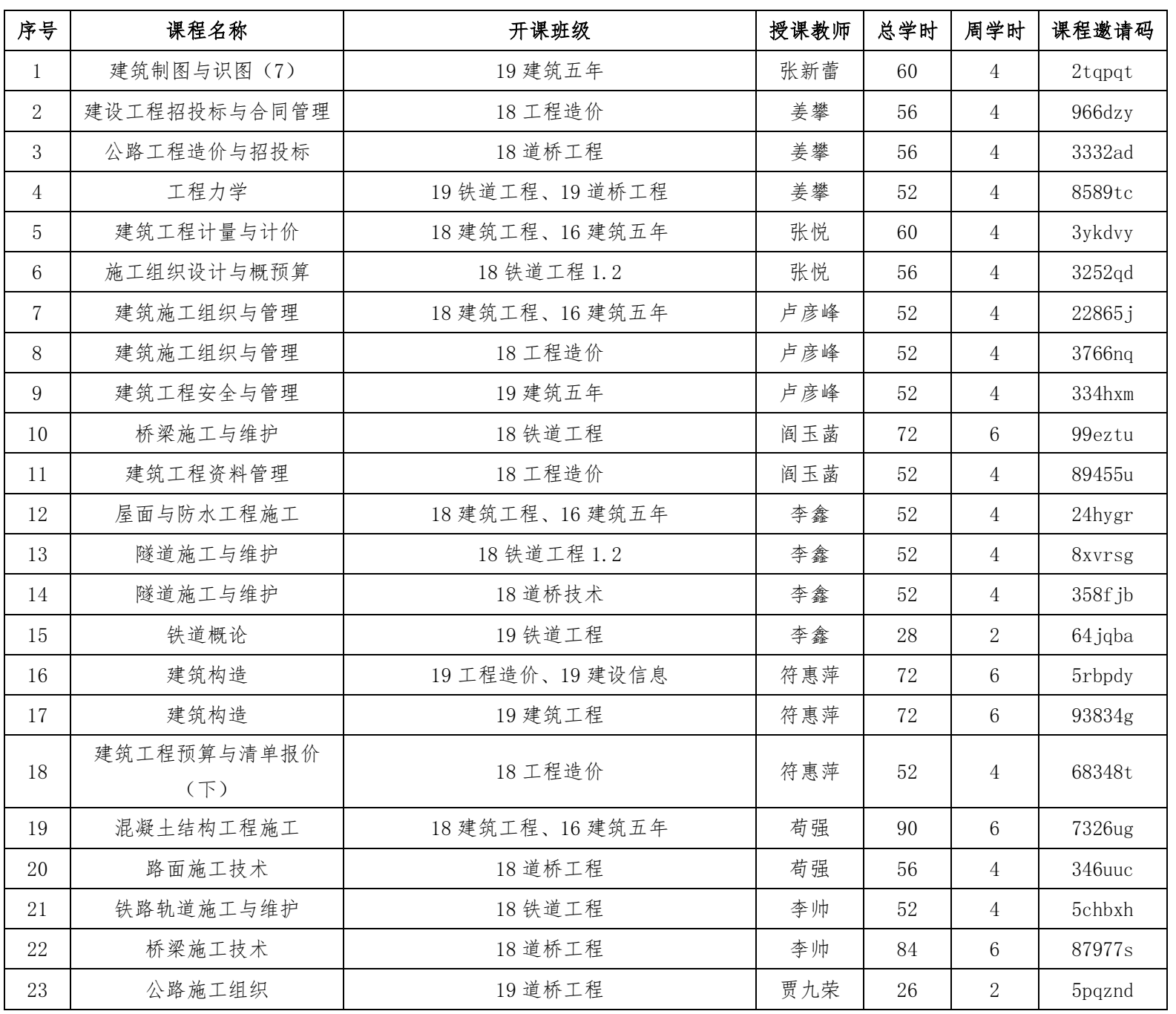 为有效防控新型冠状病毒感染的肺炎疫情,保障师生的身心健康和生命安全,最大限度降低延期开学对教学工作的影响,按照教育部《关于在疫情防控期间做好普通高等公司在线教学组织与管理工作的指导意见》(教高厅〔2020〕2号)和省教育厅《关于做好疫情防控期间高等公司教学工作的通知》(陕教疫控组发〔2020〕15号)精神,公司研究制定了《beats365官网疫情防控期间教学工作方案》,为切实做好疫情防控期间教学工作,土木工程公司特制定《土木工程公司关于2019-2020-2学期线上理论课程教学工作安排》,通知如下:本学期课表已发布,请土木工程公司各专业员工及时在智慧职教平台上进入班级对应课程参加线上学习,并按照授课教师统一安排进行签到、学习、讨论并完成相应作业。线上教学学习情况作为课程考核的重要依据,请同学们积极认真学习。