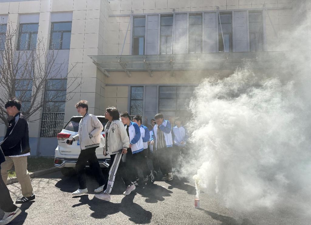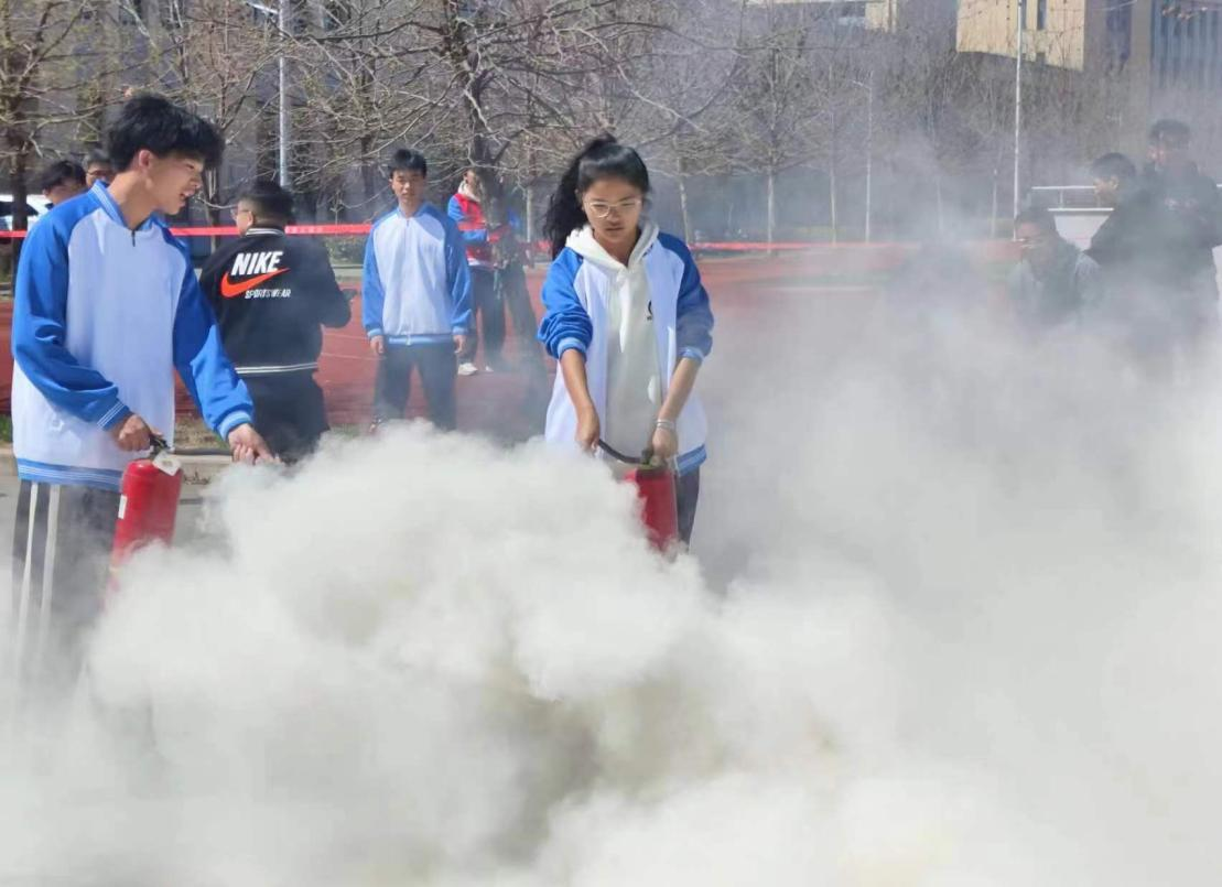 在师生安全撤离至操场后,为了让大家有效、正确地使用器材,保卫处王龙老师现场示范了灭火器的使用方法,师生们对消防器材来了一次“零距离接触”,在动手实践中掌握了灭火方法。