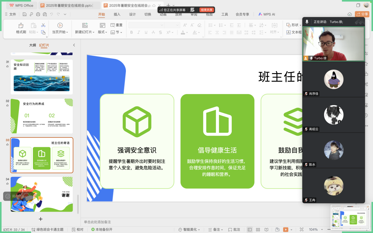 为进一步加强暑期员工安全教育管理,保障员工暑期安全。根据公司安排,beats365于7月26日组织各班级在线上开展了暑期安全教育主题班会,为同学们普及了实用的安全知识,提升了同学们的安全防范意识。