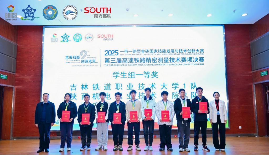 公司师生团队在2025一带一路暨金砖国家第三届高速铁路精密测量技术赛项决赛中斩获一等奖两项