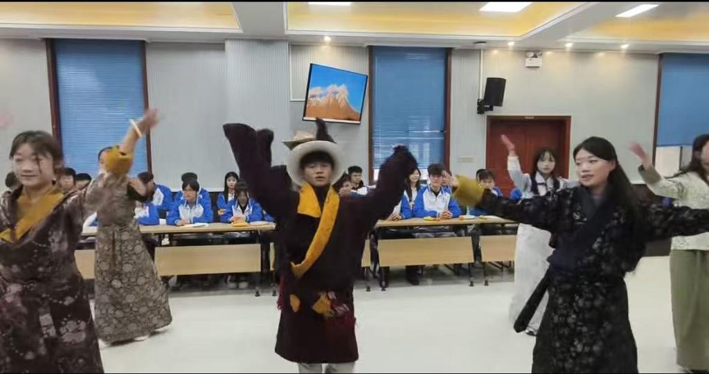 为丰富座谈会氛围,增进各民族员工间的文化交流,现场还开展了精彩的节目表演。歌伴舞《卓玛》旋律优美,舞者身姿灵动,展现出浓郁的民族风情;朗诵《到延安去》情感饱满、气势昂扬,传递出青年学子传承红色基因的坚定信念;藏舞表演中,舞者们身着特色民族服饰,动作舒展流畅,尽显藏族文化的独特魅力;新疆舞表演则热情奔放,欢快的节奏与优美的舞姿赢得了在场人员的阵阵掌声。一个个精彩的节目,不仅是各民族文化的生动展示,更是各民族学子团结友爱的鲜活体现。