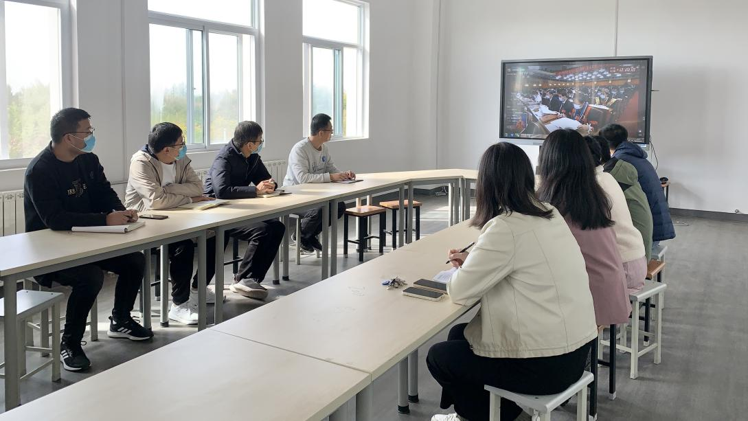 上午10时,公司组织在蟠龙校区的教师集体在行知楼二楼会议室观看,其余教师纷纷通过电视、手机等方式观看党的二十大开幕会直播盛况。