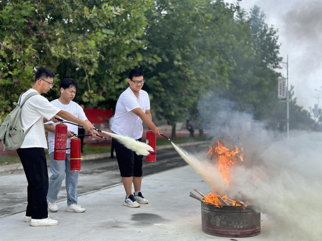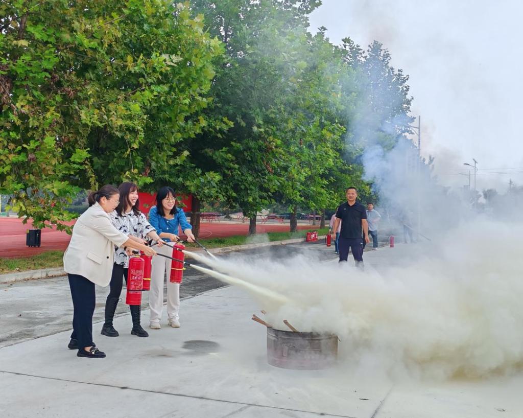 随后,师生们先后进行了灭火实操演练。在王龙老师的指导下,师生们们勇敢地拿起灭火器,按照正确的操作方法,成功地扑灭了模拟火源。通过实际操作,师生们不仅掌握了灭火技能,也增强了应对火灾的信心。
