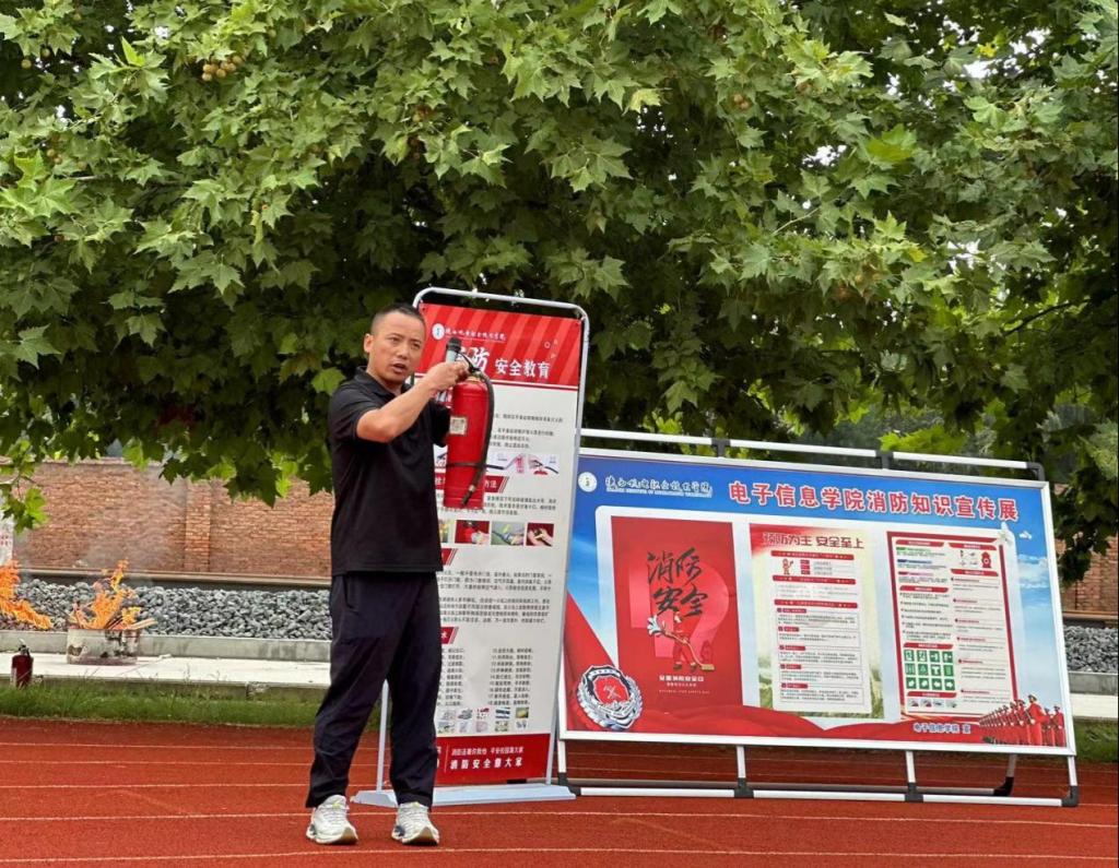 在安全地带,公司邀请了保卫处王龙老师为师生们进行消防知识培训,详细讲解了干粉灭火器等消防器材的使用方法,并现场进行了灭火演示。师生们们认真聆听,细心观察,对消防安全知识有了更深入的了解。