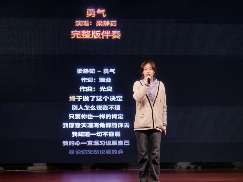大赛自启动以来,便得到了同学们的积极响应,经过层层选拔,共有10位选手脱颖而出,成功晋级决赛。决赛当天,选手们各展歌喉,风格迥异,或激情澎湃,或深情款款,或高亢激昂,每一首歌曲都被选手们演绎得淋漓尽致。他们用高超的演唱技巧和强大的舞台表现力,展现出了精湛的音乐功底,赢得了评委和观众的一致好评,动人的歌声向在场所有人传递着青春的活力与梦想,赢得了台下观众的阵阵掌声与欢呼。
