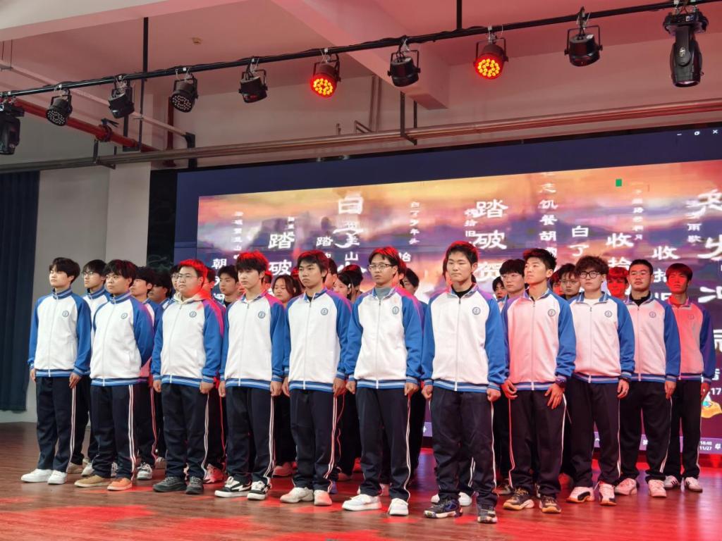 比赛现场氛围热烈且庄重,各班级演绎各具特色、亮点纷呈。参赛队伍围绕经典主题精挑篇目、悉心编排,从《觉醒年代》里百年先辈的家国担当,到《将进酒》中诗仙李白的盛唐豪情;从《盛世中国》赞颂时代发展的昂扬基调,到《琵琶行》诉说千古悲欢的细腻情思,题材多元、内涵厚重。参赛班级均精准把控细节,普通话发音标准流畅,节奏快慢张弛有度,将文字背后的情感张力与精神内核展现得淋漓尽致,尽显铁道学子对经典文化的深刻理解。