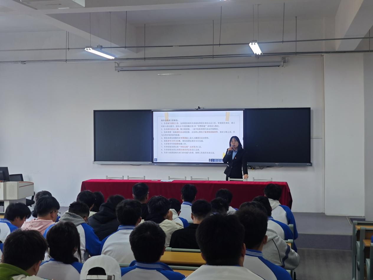 最后,公司专职辅导员石晨晨老师给同学们介绍了公司团总支员工干部的工作职责和任务分工,同时给同学们介绍了公司推优入团、推优入党工作的相关流程及要求,鼓励同学们以更高的标准严格要求自己,努力成为学业优秀、服务同学、团队合作、沟通协调、自我提升的典范,为公司的发展贡献自己的青春力量。