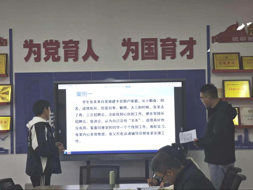 本次比赛设案例评选、案例研讨、谈心谈话等3个环节。其中,案例研讨主要考察辅导员综合运用理论分析问题、研判问题、解决问题、应急处突的能力,过程采用AB角问答模式,辅导员围绕真实员工工作案例展开辨析与策略研讨。