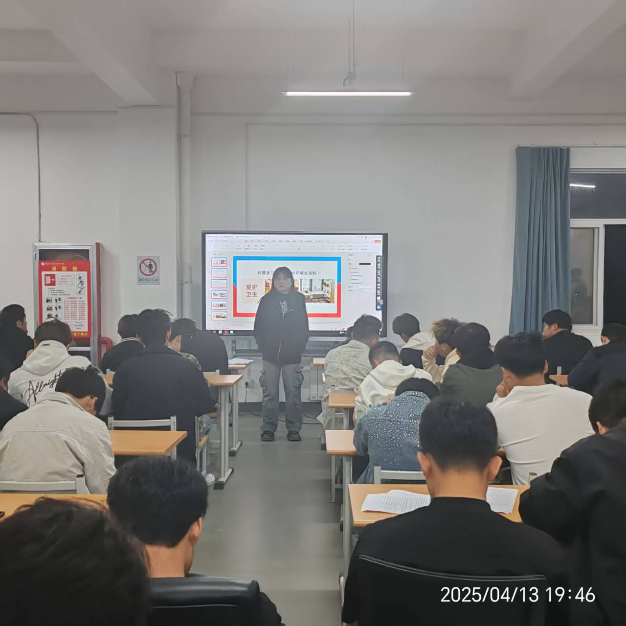 班会上,各班班主任/辅导员老师通过播放校园火灾警示片、列举真实案例等方式,向同学们阐述了宿舍安全隐患的严重后果,重点强调了违规使用电器、私拉电线、存放违禁物品、抽烟等行为的危害性。随后,老师们详细解读了公司宿舍管理的各项规章制度,包括作息时间、检查标准、卫生标准、访客管理等方面,引导同学们自觉遵守规定。